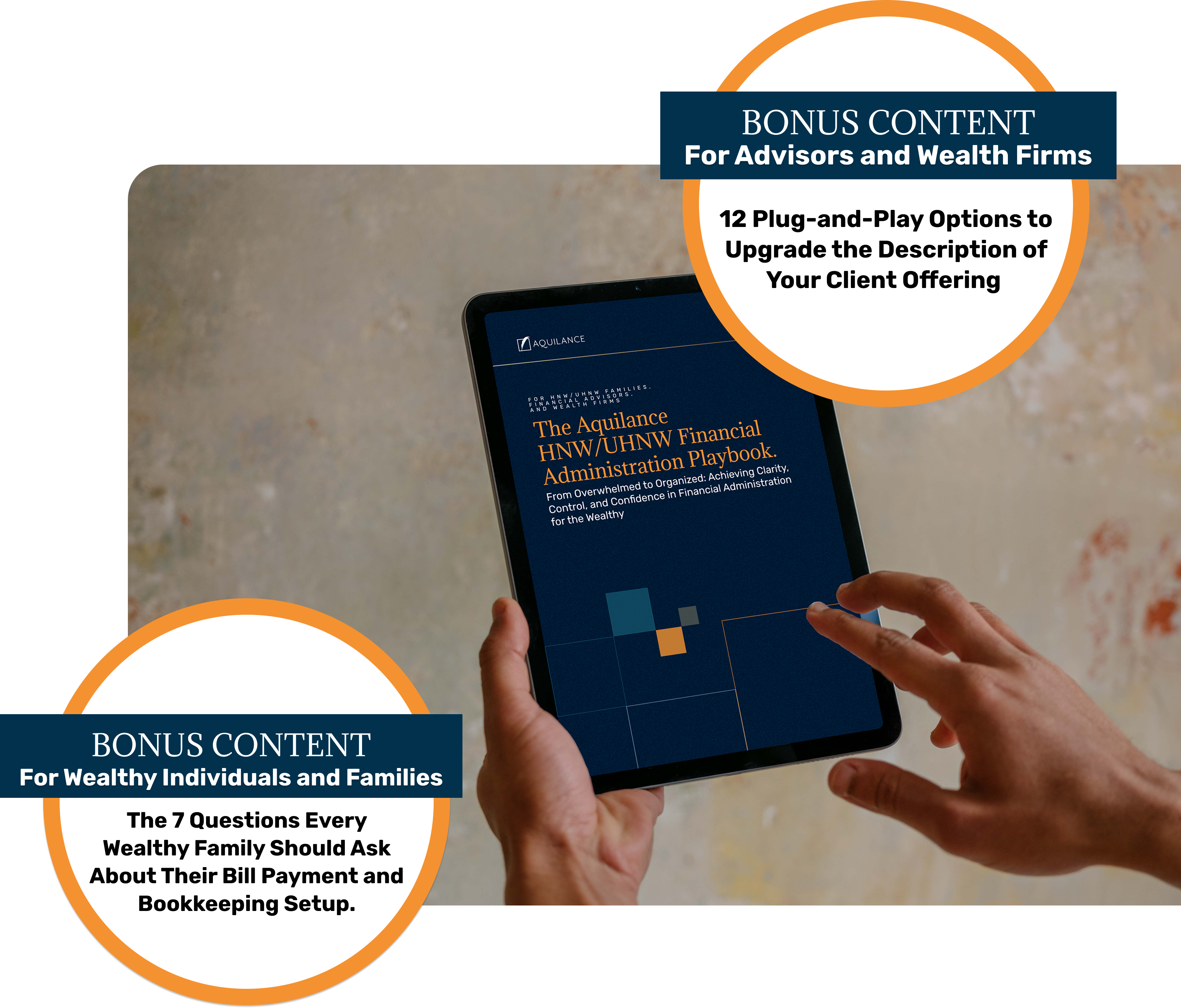 This is precisely why we wrote the Aquilance HNW/UHNW Financial Administration Playbook. It's a practical guide, born from real-world experience, designed to streamline and elevate how personal finances are managed.